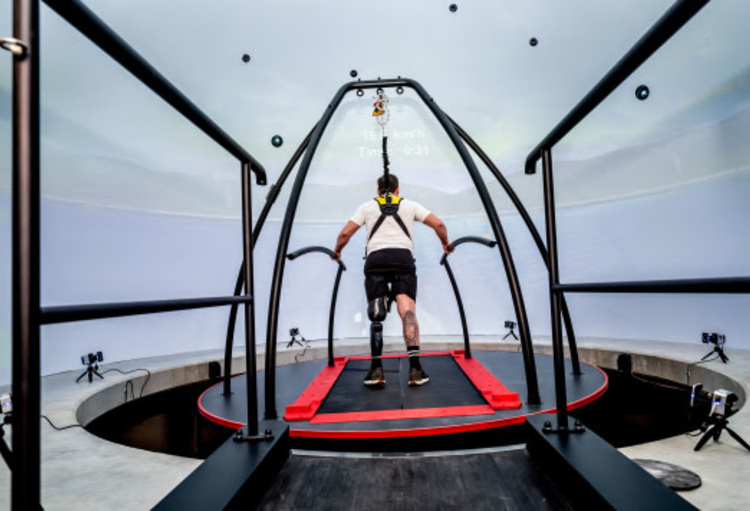 In de 300 graden VR-koepel van het MOVElab houden 18 infraroodvamera's de proefpersoon in de gaten. Die loopt op een loopband die op een bewegend krachtenplatform is geïnstalleerd. De proefpersoon wordt ondergedompeld in een virtuele wereld waarbij hij in realtime feedback krijgt van de onderzoekers.